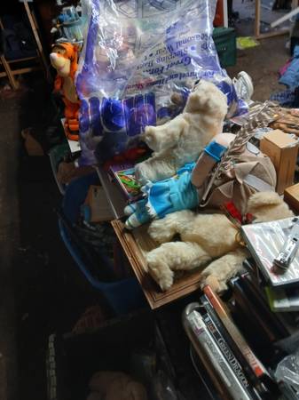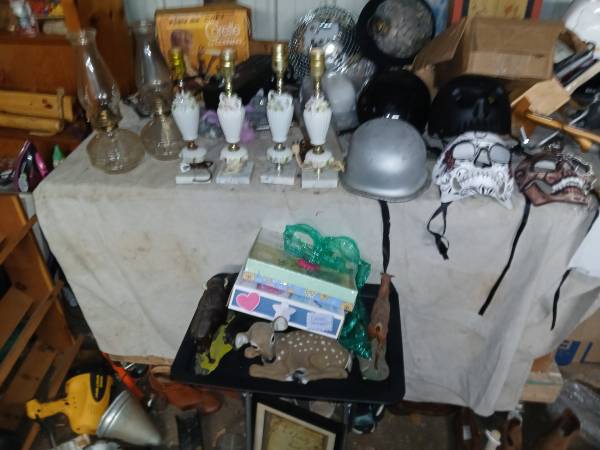 Bring your trucks and trailer, over 1 kn of clothes some new with tags bootsshoes,coats Jens purses suit caseses vintage oil lamps lamps, lots of small items toys vintage toys table router, vintage cocktail tables